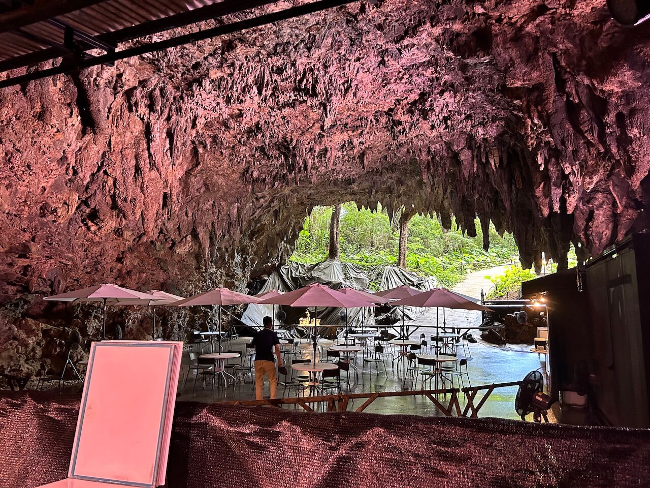 洞窟カフェはこんな感じ 奥でツアーの説明をしている