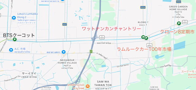 ここからクローン8定期市に行こうとしたのですが、バンコクじゃないので、ViaBusが使えないんですよね。仕方がないのでGrabを呼び、80バーツで連れて行ってもらいました。