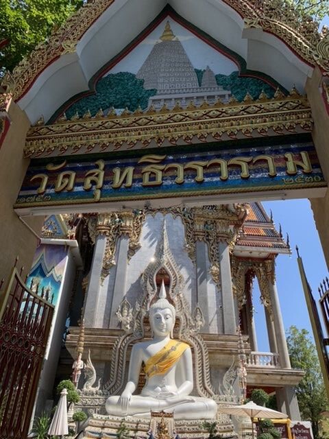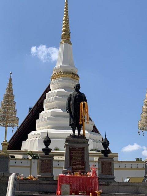 この仏像の前にお経が書かれたプレートがあったのだが、驚いたことにそこには日本語も!一応そのカタカナ読みとタイ語を見比べながら唱えてみた。教え子の学生にこの写真を送ってみたが、彼はお経を読めるけど、意味はあまりわからないと言っていた。私たちも日本語でお経を読むことができても、意味はあまりわからないから同じようなものか。