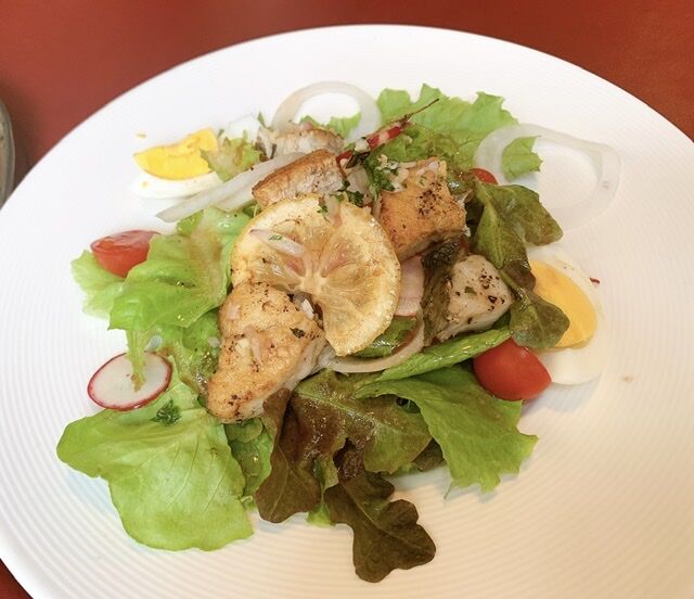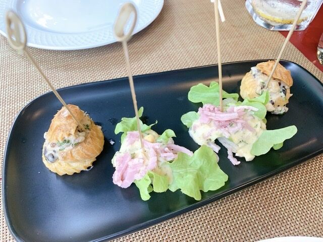 ランチセットはオードブル、メイン、飲み物のセットで350バーツ。残念ながら2種類ずつしかなく、この日はすでに1種類は売り切れていた。まだ12時過ぎだったのに(´Д⊂) でも普通のメニューから選び堪能した。