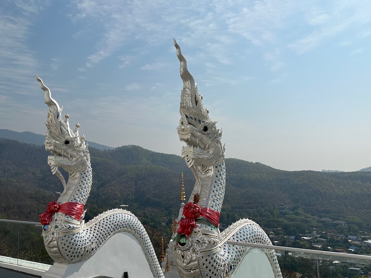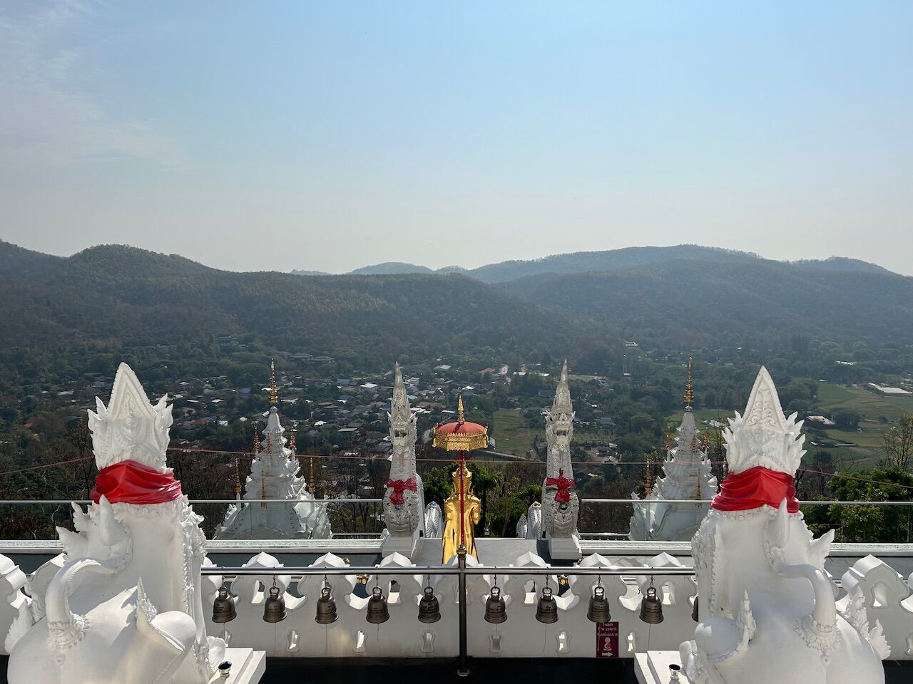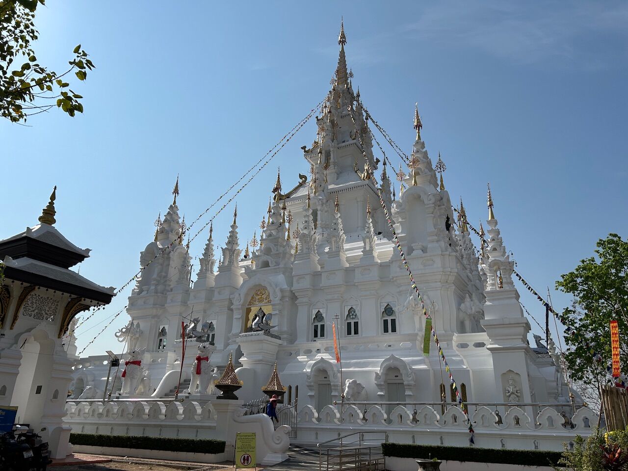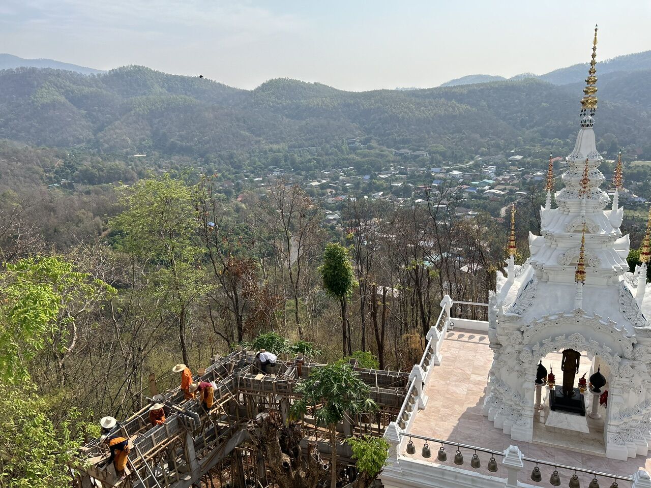 チェンマイ最後の土日は、少しPM2.5もマシだったので、2日間とも遠出した。まず土曜日は、Google Mapで見つけた「白いお城」と書かれていたお寺へ向かった。それは、旧市内から20㎞ほど離れた山の上にある「ワット・プラタート・シームアンポン」。