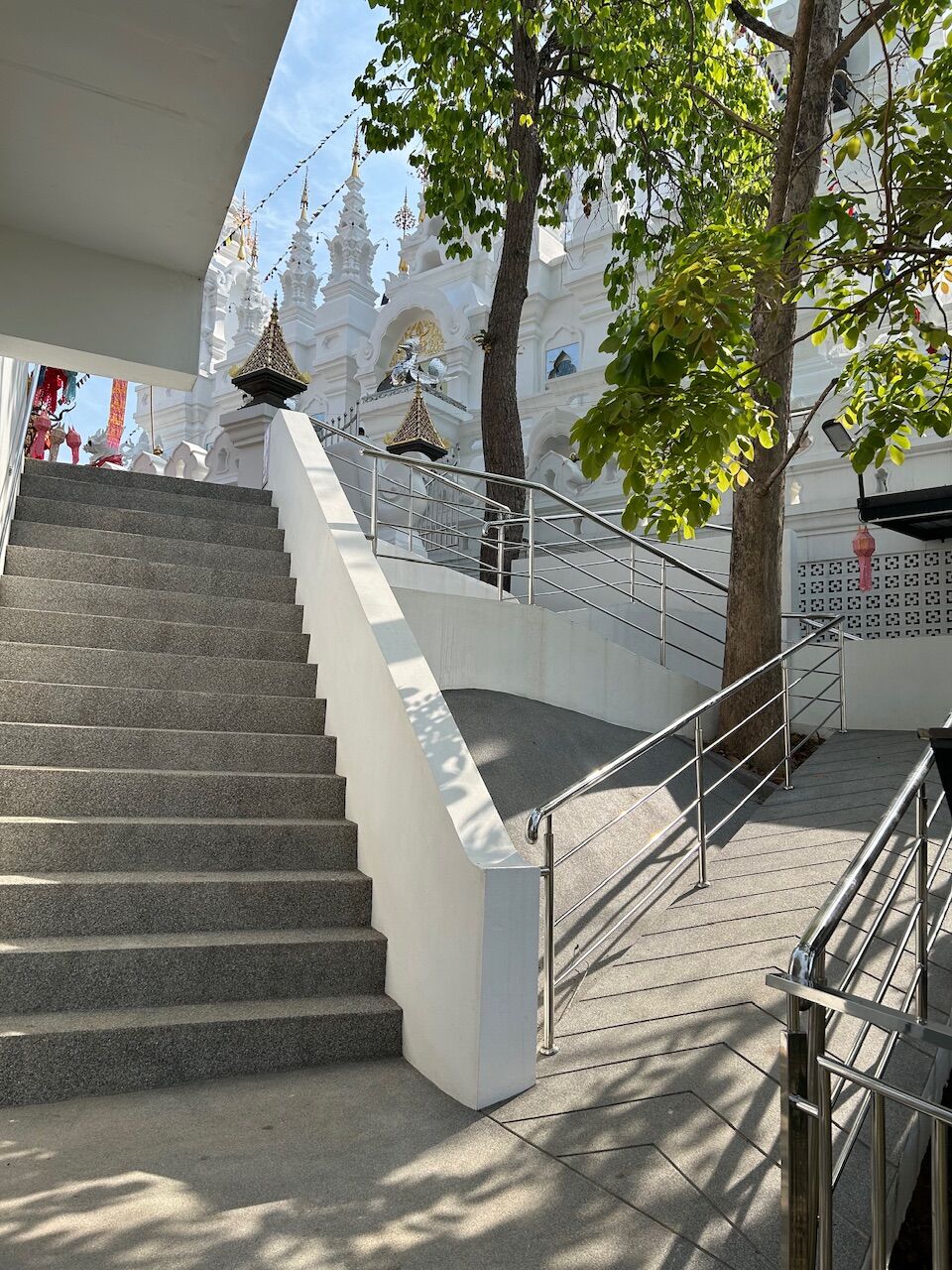 カバーが被せられていたので分かりにくかったが、椅子式のエレベーター そして毎度のことながら、お寺ではトイレをお借りしている。この前、モーンパヤーナークというお寺のトイレがホテル並みにきれいで驚いたが、ここもまだ新しいこともあり、かなりきれいなトイレだった。