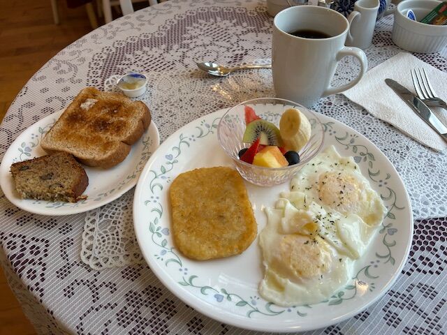 2日目は目玉焼きとハッシュドポテト