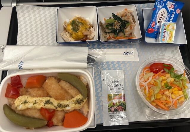 ANAの機内食おいしそうですね!JALもそうですが、日本の場合主菜、副菜にデザートまでちゃんとしていて「空の旅」って感じがしますよねえ。
