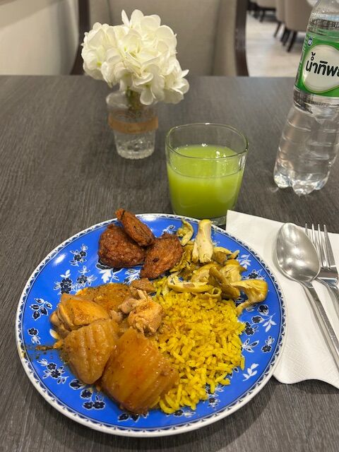 バンコク行きは第2ターミナルだったので、移動に15分ほどかかりましたが、少し早く着いていたので、プライオリティパスが使えるラウンジへ向かいました。5時に起きて、紅茶を一杯飲んだだけなので、さすがにお腹がすきました。朝カレーです。