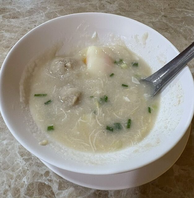 そしてYちゃんが、食べたいと言ったジョークのお店へ。2月にバンコクに来た時、私が近くのお店で買ってきたジョークが、これまで食べたことがなくて忘れられないと言うので、すぐ近くの有名店「ジョークソムペット」へ。
