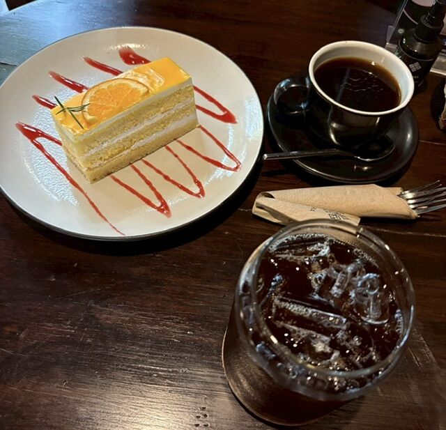 コーヒー2つとケーキ2つで350バーツ。クチコミにはテラス席が素敵と書いてあったんですが、まだ雨が降るかもしれないと室内のテーブルにしました。でもどこもかしこもおしゃれで、インスタ映えするところだなと思います。