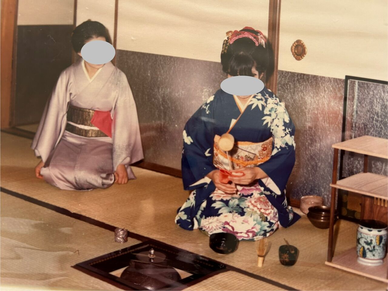 この写真もアルバム整理で処分する可能性も高いので、一応記念かなと思い、ここに載せさせてください。もう40年以上前のセピア色の写真です。伯母が亭主をしたお茶会で私がお点前をしました。