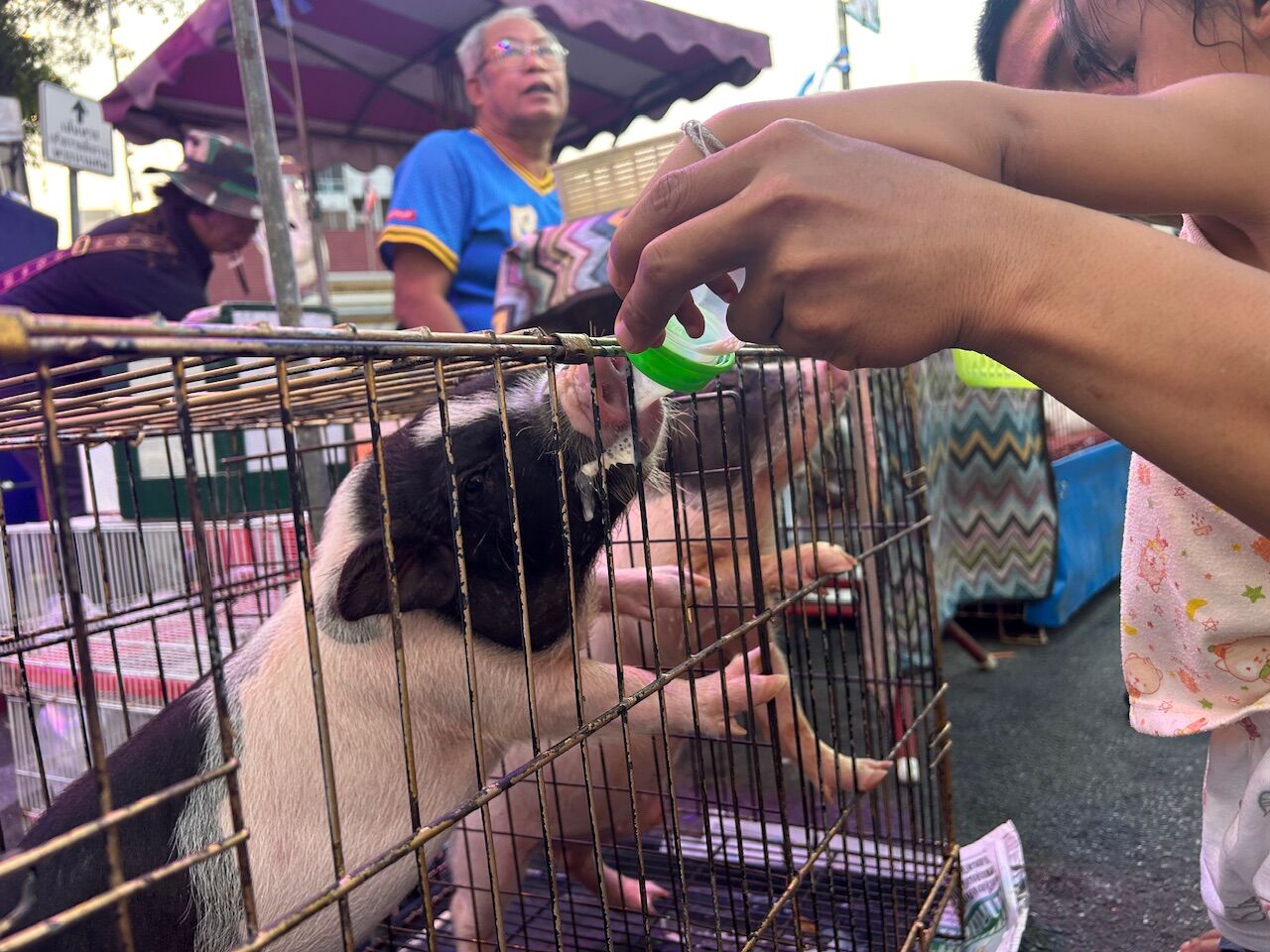 サナームチャイ駅周辺は、ちょっとした夜市のようになっていました。あまり見たことのない動物も売っていました。
