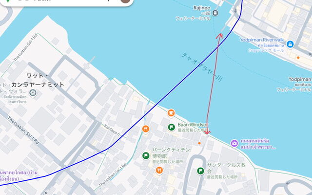 ここはソムデットヤーのあたりよりももっと交通の便はいいです。MRTサナームチャイ駅からすぐの船着き場Rajneeから渡し舟がでています。でも30分に1本なので、待つことも多いです。