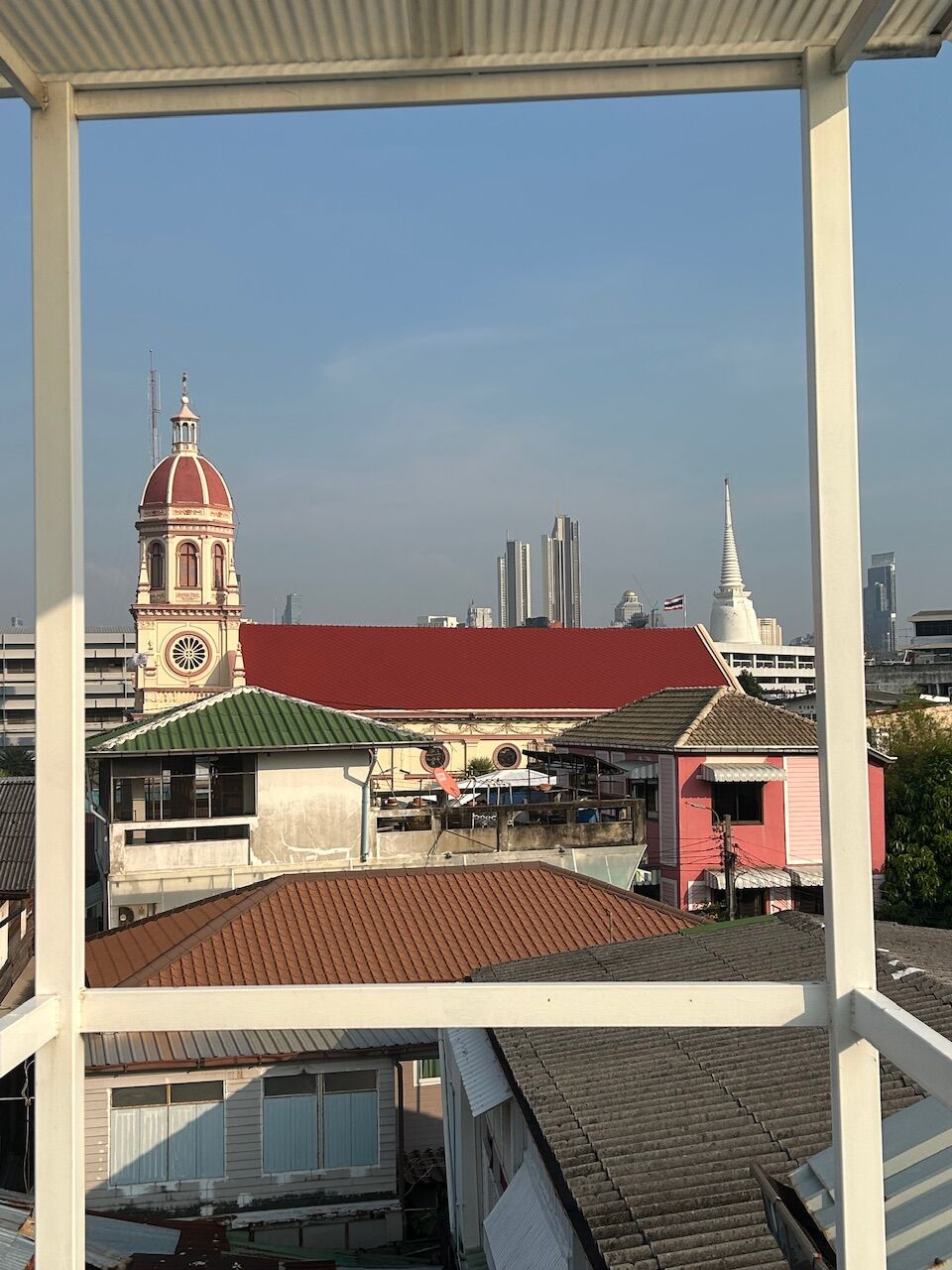 屋上に上がると、周りが良く見えます。サンタクルス教会もすぐそこです。この日はPM2.5 もあまりひどくなく、気持ちのいい日でした。