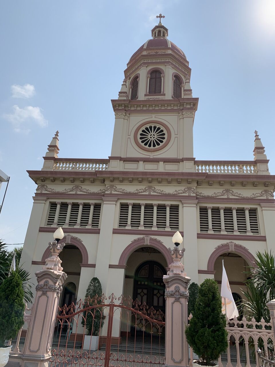 タークシン王はカトリックの宗教行事である聖十字架昇天祭(サンタクルス)にあたる9月14日に教会の建設を命じたため、サンタクルス教会と名付けられました。1770年に作られた最初の木造教会は、1833年に火災で周辺の集落とともに焼失しました。その代わりにレンガとモルタルで作られた教会が建てられ、1916年に教会は完全にイタリア建築様式で改築され、現在の姿となりました。