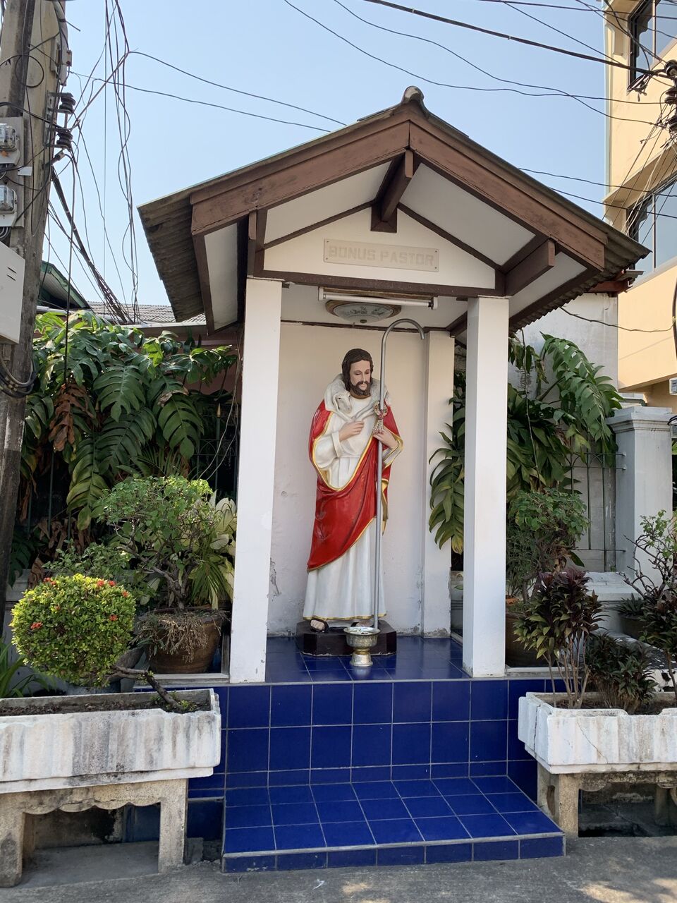 教会から少し歩いた学校の近くにイエス像と