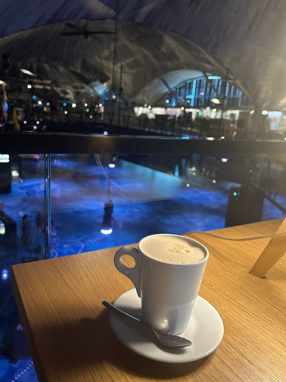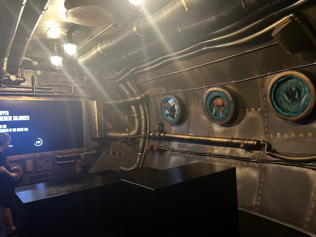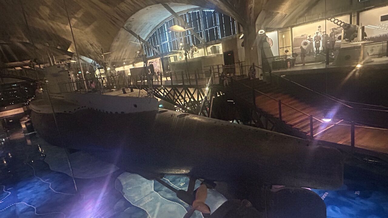 かなり広く歩くだけで少し疲れたので、館内のカフェで一休みしました。ちょっとブルーの光に照らされた潜水艦を眺めながらのコーヒーも美味しかったです。