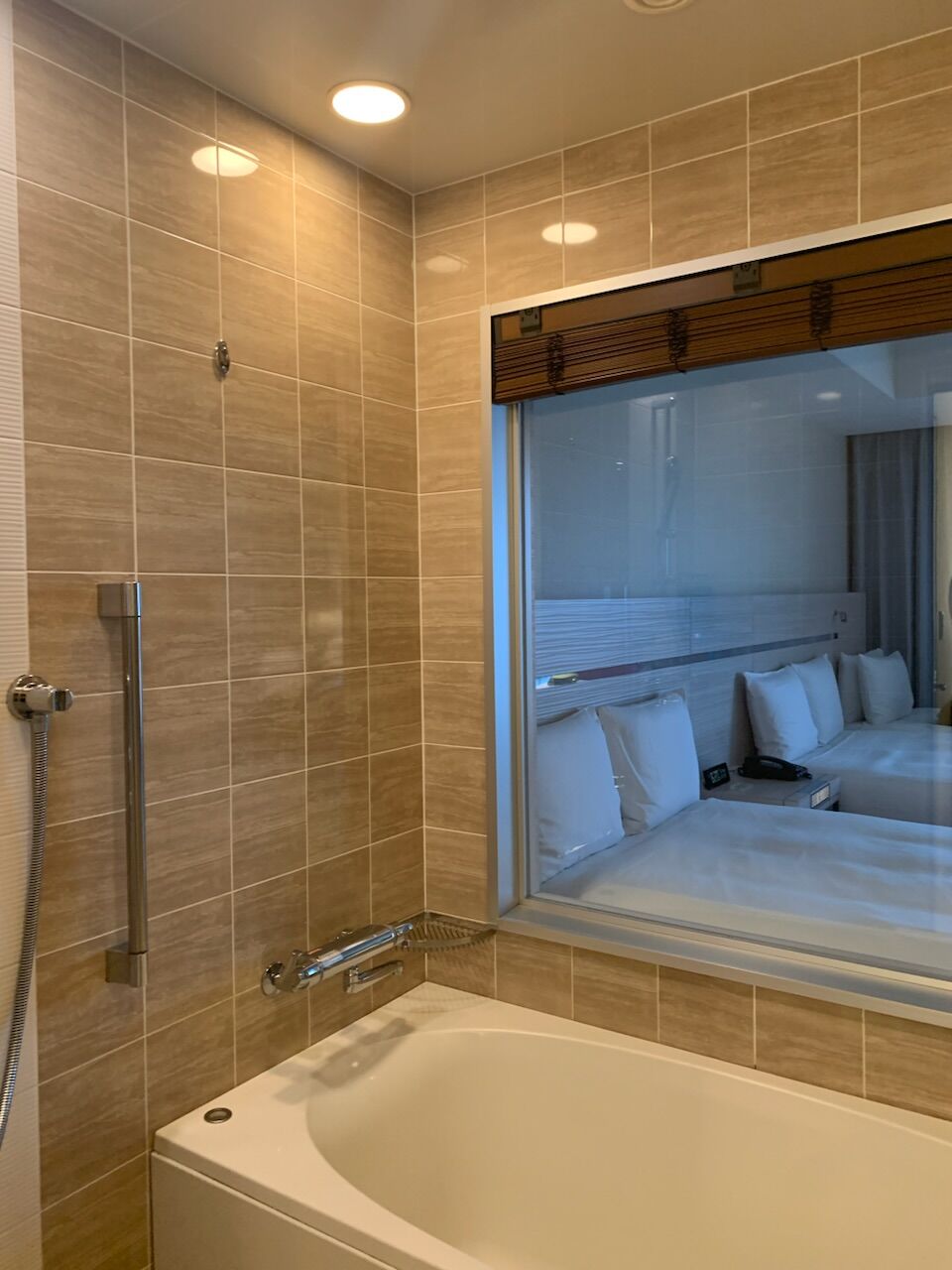 やっぱりバスルームはガラス張り(もちろんブラインドはある)