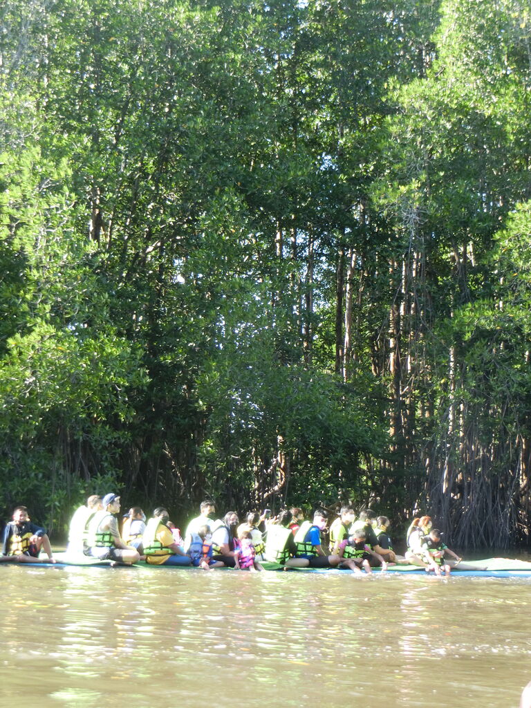 午後3時からいかだクルーズがあるとのことで、その前にチェックイン。部屋はシンプルなロッジなので、贅沢な感じはないが、エアコンとテレビ、トイレシャワーはついている。この屋根があるたてものが、宿泊ロッジ。今回はプロモーションで3人で5100バーツ。