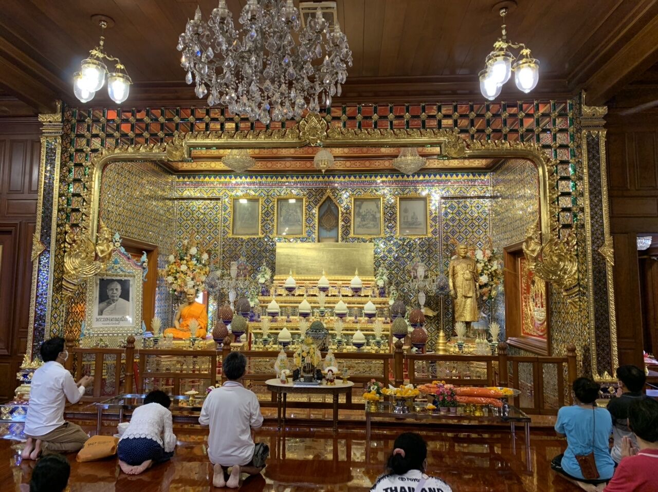 この手前でお祈りして、ここにお花を添えて、金箔を仏像に貼ります