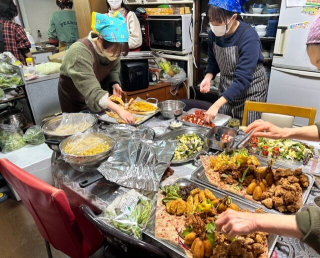 子ども食堂のボランティアには月2回土曜日に行っている。いつもは3時頃に行き、子どもたちが6時頃から来て食事、大体7時半頃に片付けを済ませて終わる。子どもたちが多くても10人弱、ボランティアが2,3人といつもなら12,3人程度の食事だが、今回は子どもたちはフル出席、ボランティアもできるだけ参加、そしていつも寄付をくださる方をご招待と、総勢25名の参加となった。つまりいつもの倍の量を作らねばならなかった。