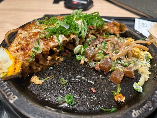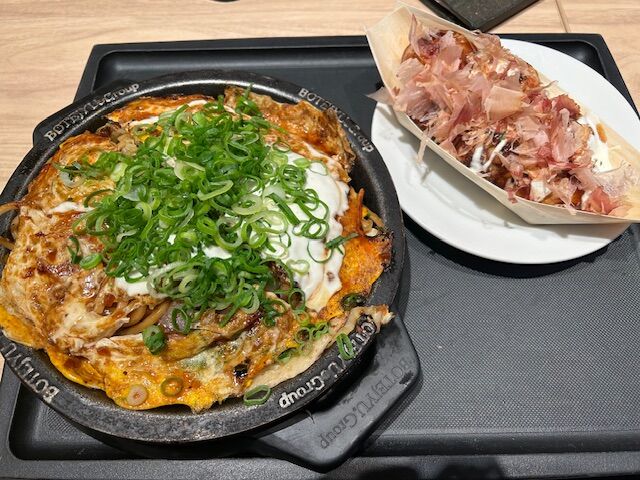 実はぼてじゅうとJapan Travelng Restaurantは同じ店でもあるので、お好み焼き以外のメニューもある。いろいろな定食もあったのだが、やはりぼてじゅうのメニューから選んでしまった。やはり私は大阪人だなあ。専門店のお好み焼きを見ると、食べずにいられない。